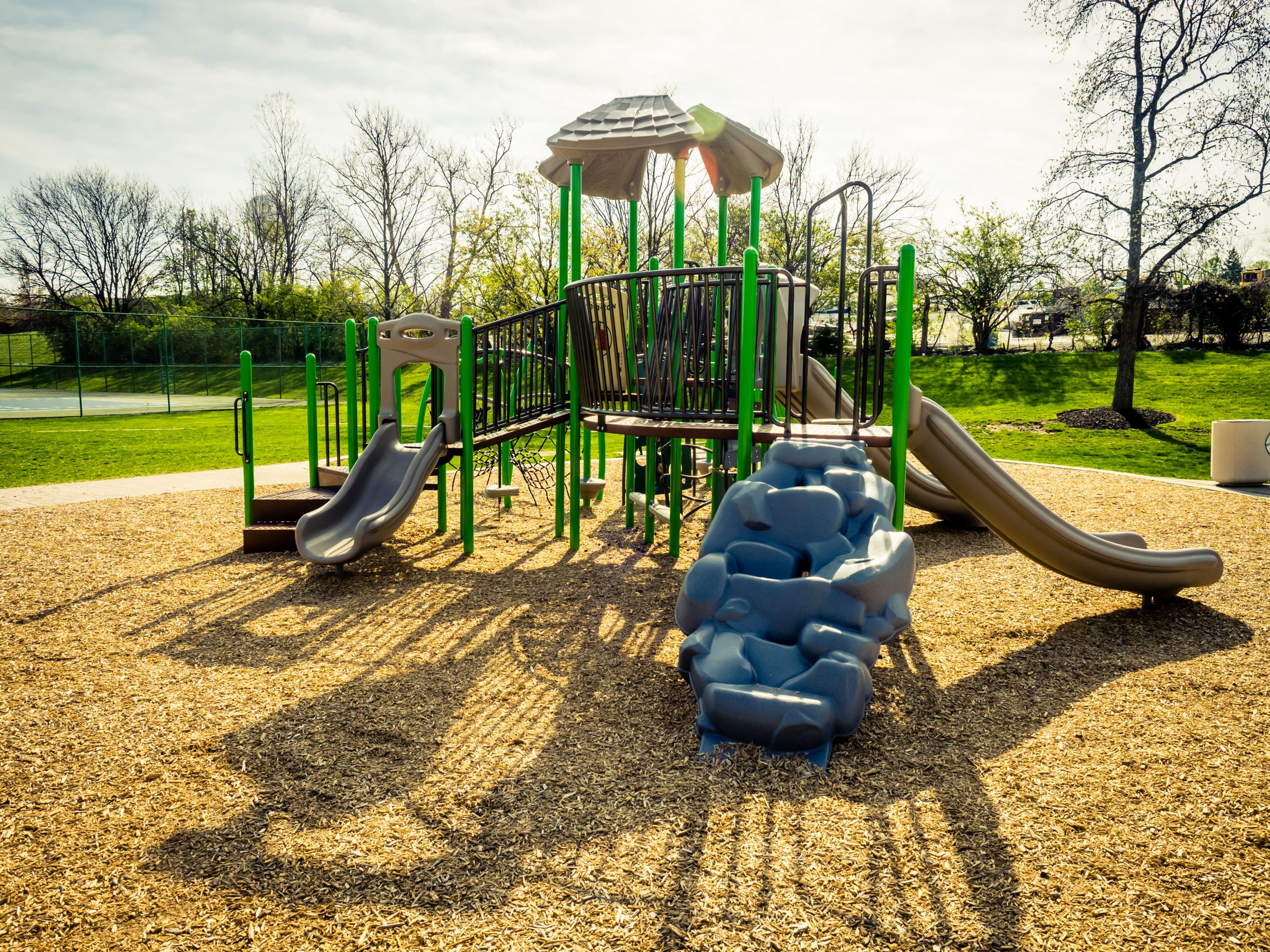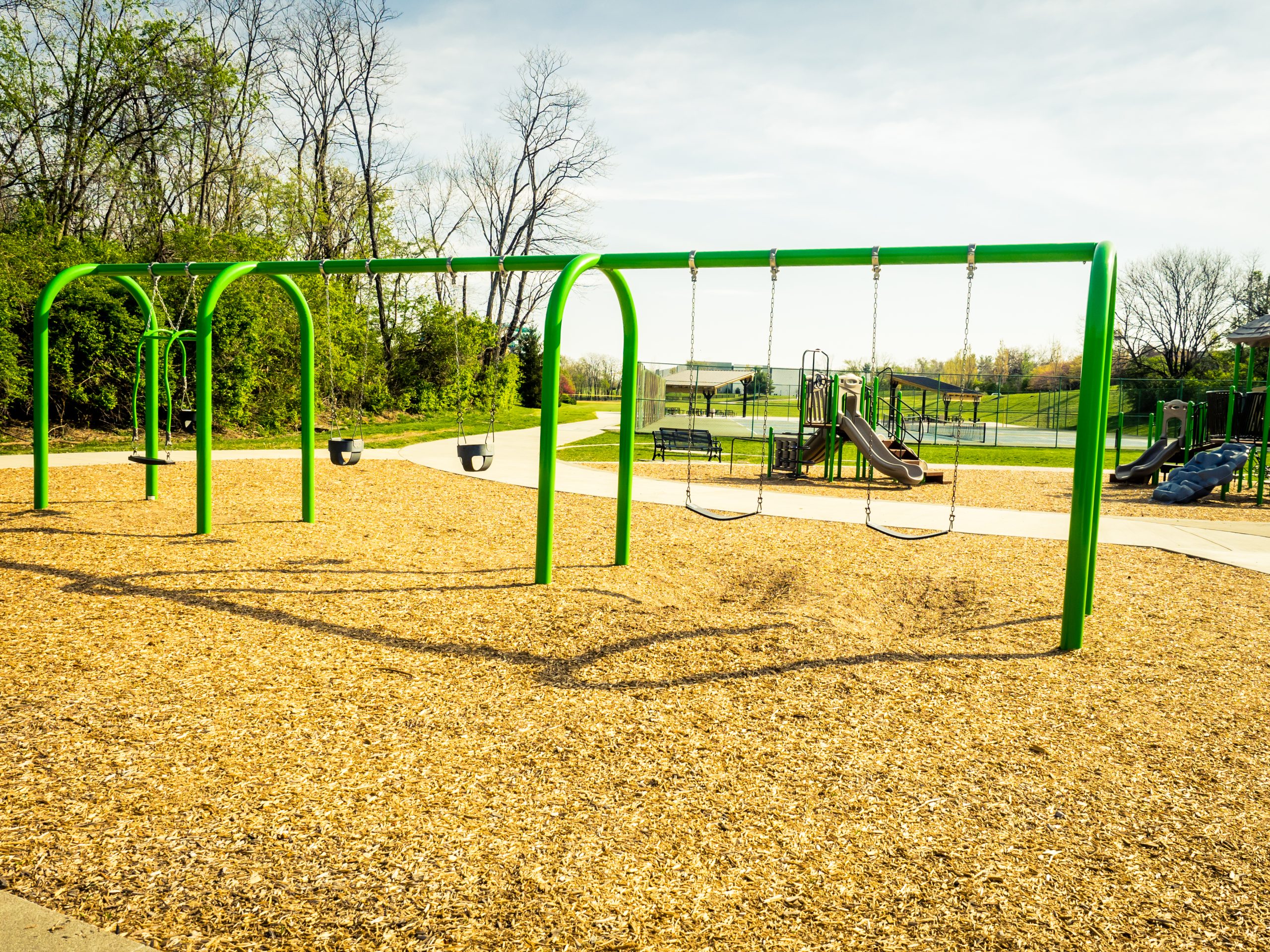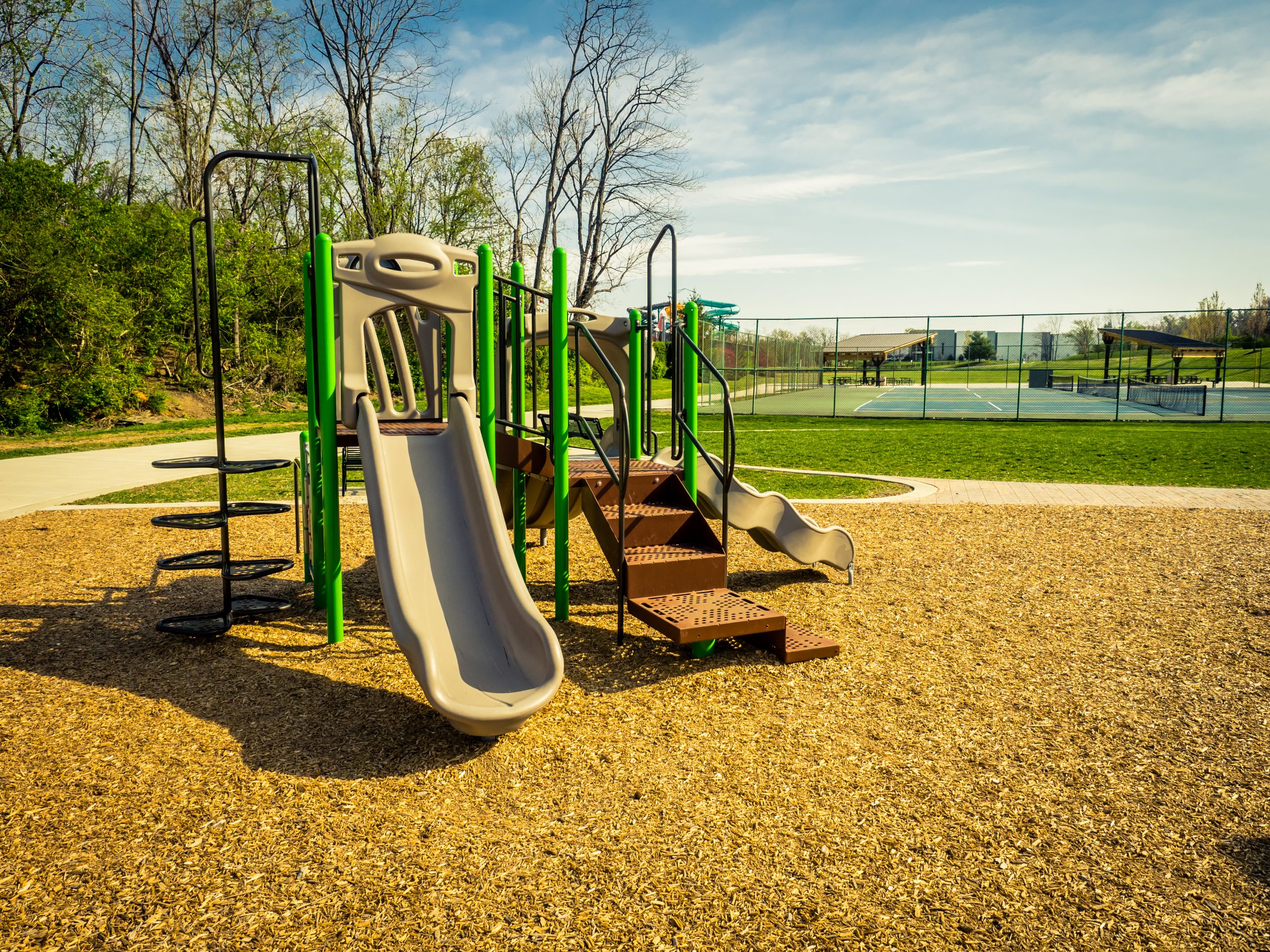 Baseball fields (2), basketball courts (6 half courts), benches, trellis with picnic tables, playground equipment, restrooms (2), soccer field, swings, tennis/pickleball courts (3), shelters with tables