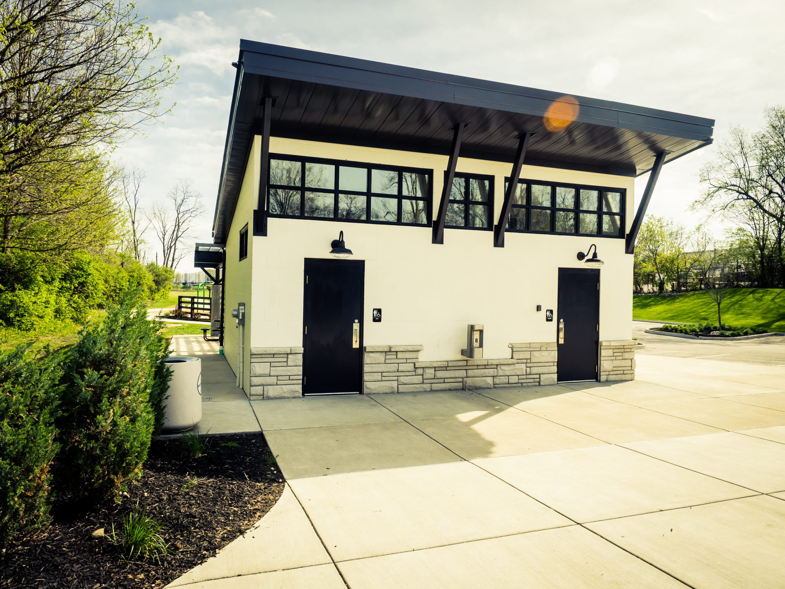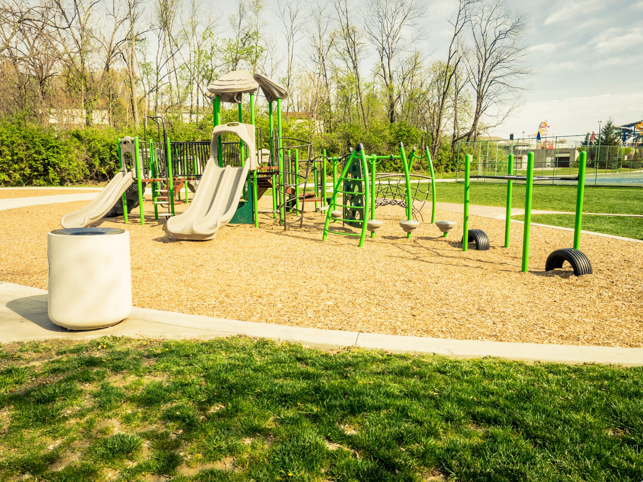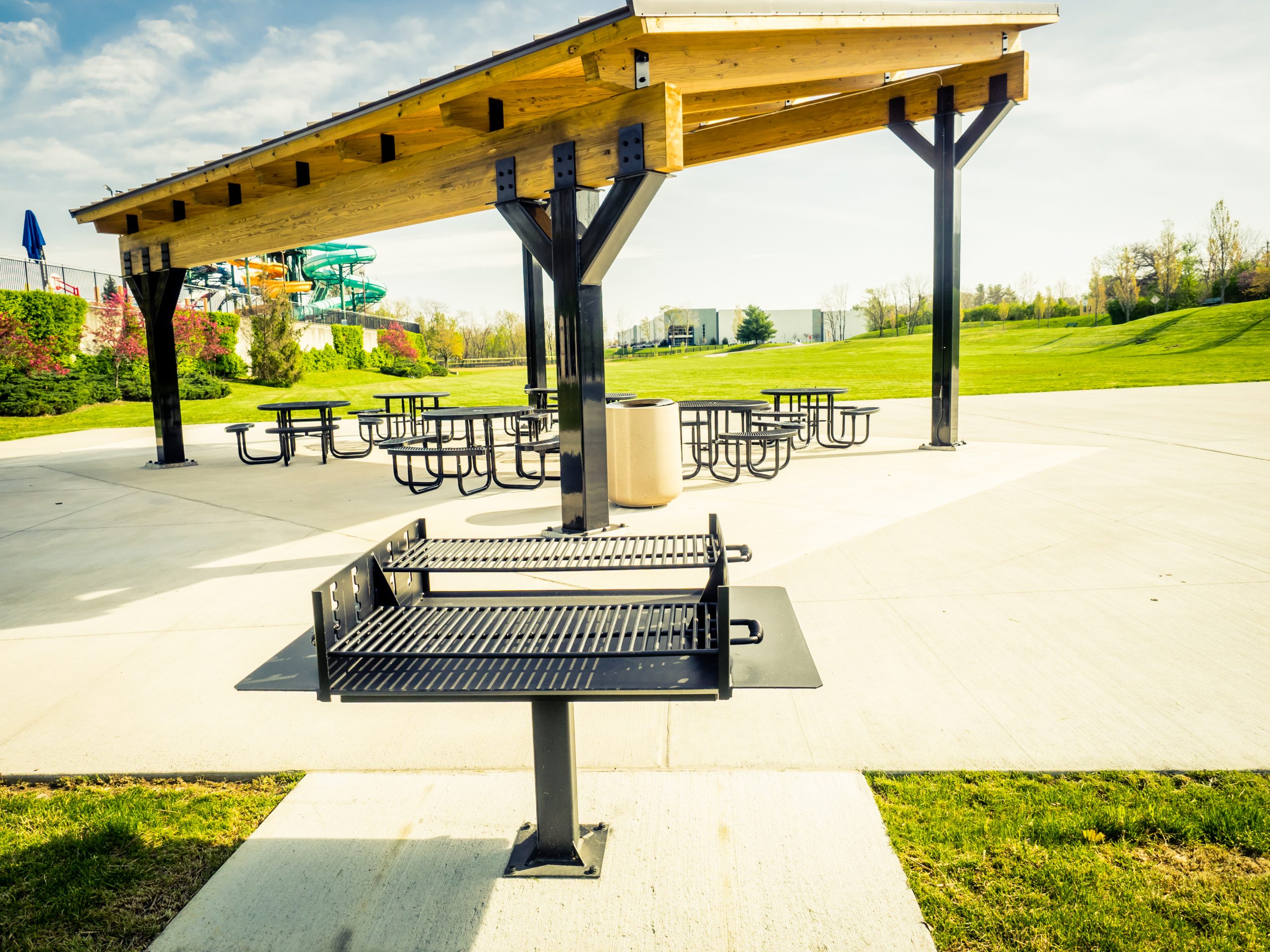 Baseball fields (2), basketball courts (6 half courts), benches, trellis with picnic tables, playground equipment, restrooms (2), soccer field, swings, tennis/pickleball courts (3), shelters with tables