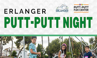 Erlanger Putt-Putt Night Date May 12 2026 Time 6:00 PM - 8:00 PM Location Putt Putt Golf Erlanger 3139 Dixie Hwy, Erlanger, KY Category Games & Fun Next Event Youth Fishing Derby Date May 16 2026 Time 8:00 AM - 10:00 AM Share this event